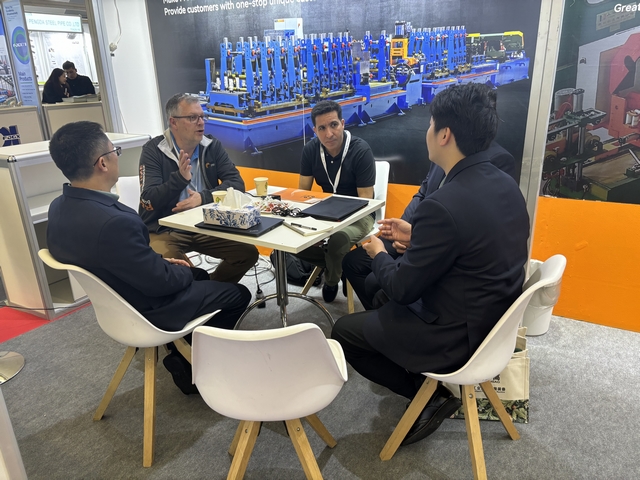 漢高科技亮相展會,與全球各地的不銹鋼制管企業進行技術交流。